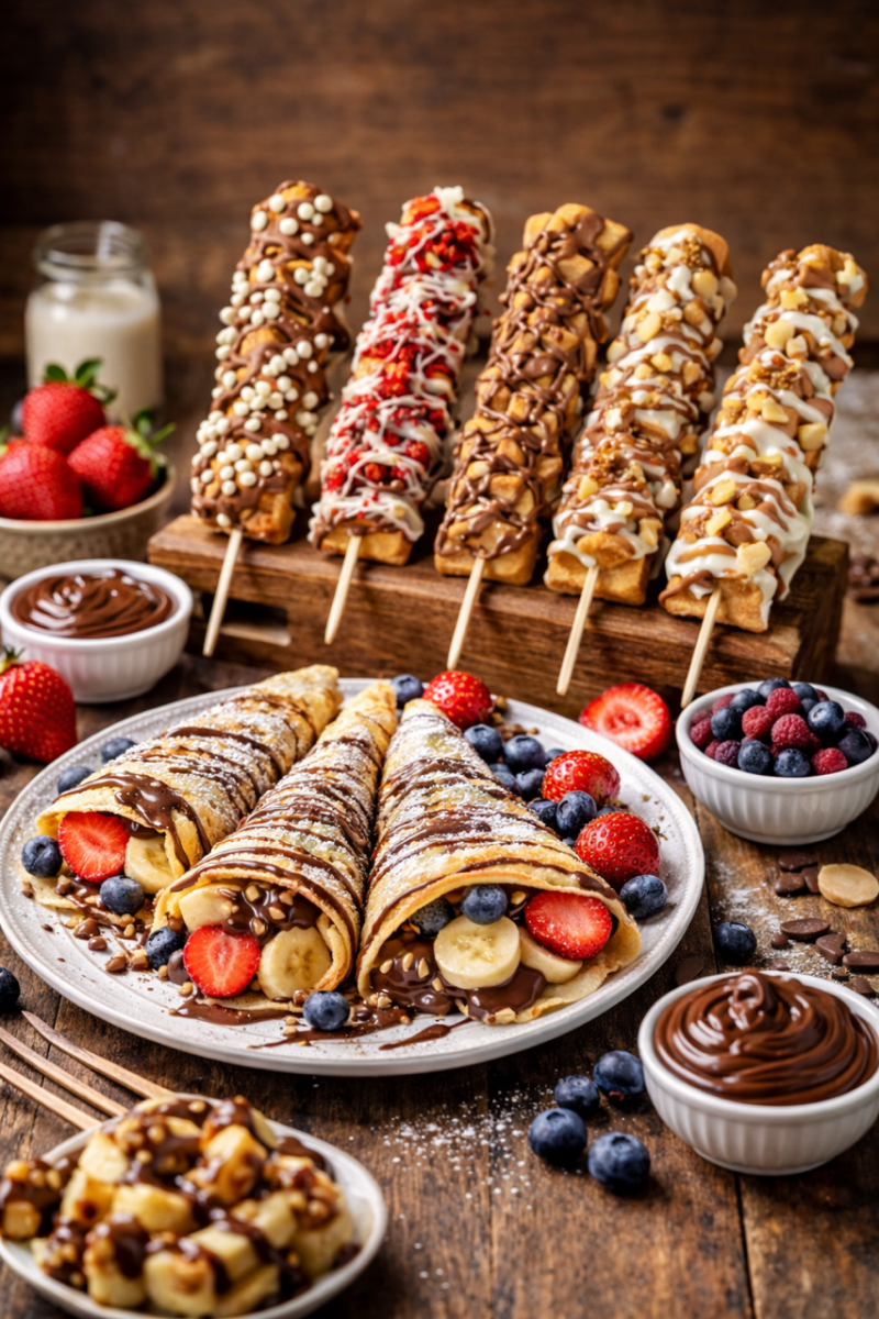 Unser mobiler Crêpes & Bubble Waffel Stick - Stand bringt französisches Flair, unwiderstehlichen Duft und frisch zubereitete Leckereien direkt zu deinem Event!