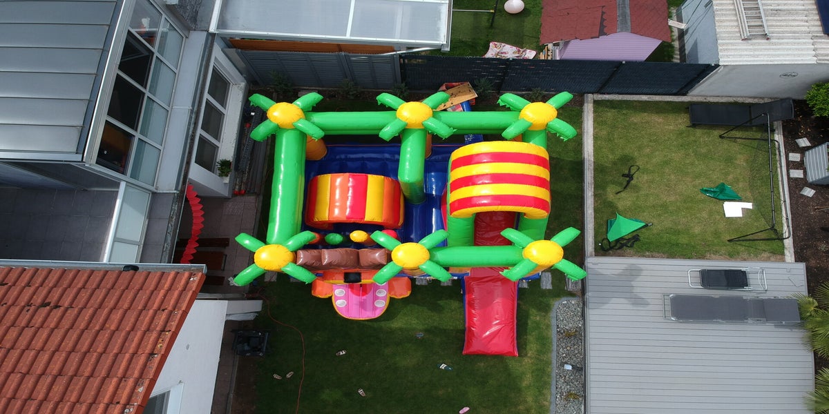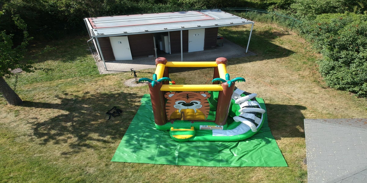 | Lieferumfang | Hüpfburg, Gebläse, Erdnägel und Untergrundplane |